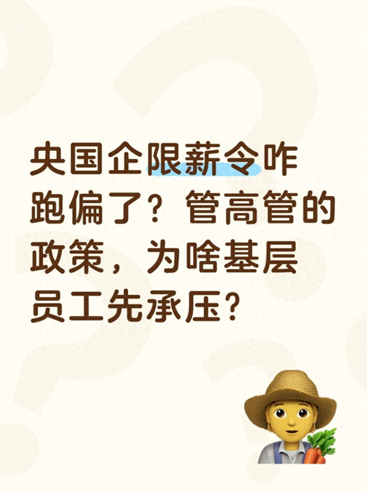 “明明是管高管的限薪令,咋最后砍的是我们基层的绩效?”“公司盈利涨了,高管收入没见少,我们工资却原地踏步了三年”“降本增效先拿基层开刀,管理层就象征性少拿点,这算哪门子限薪?”